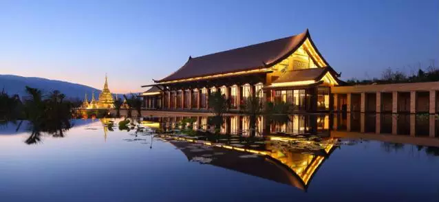 度假区的酒店群隐匿在热带雨林当中,整体设计风格与原生态的自然环境相得益彰。酒店群囊括山间别墅型的文华酒店、皇冠假日度假酒店和希尔顿逸林度假酒店三家高端度假酒店,依山傍水,有着浓浓的傣族风情。